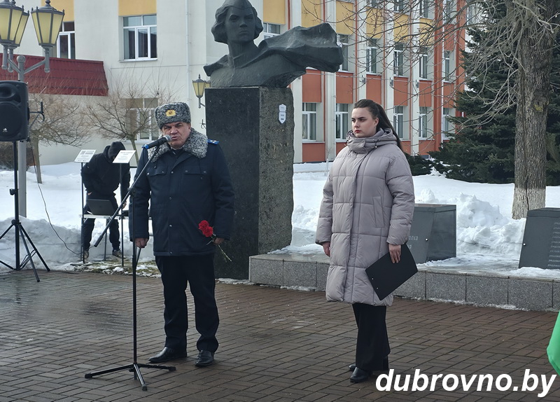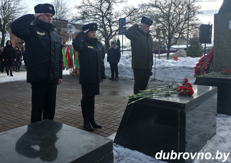 Торжественная церемония возложения венков и цветов, посвященная Дню защитников Отечества и Вооруженных Сил Республики Беларусь, состоялась у памятника Герою Советского Союза Анне Никандровой в Дубровно. Участие в церемонии приняли руководство района, представители коллективов и организаций города, общественных объединений и партий.