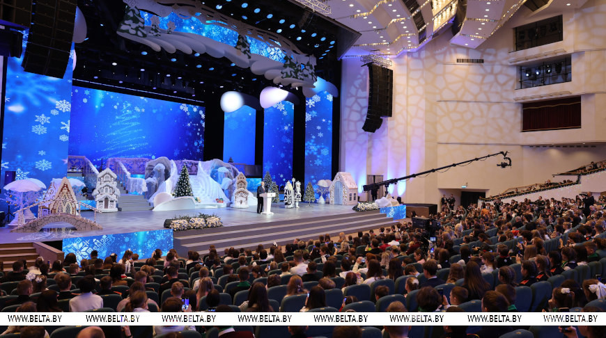 «Я уже очень много наговорил и о труде, и об учебе. Знаю, что вы не только ради этого приехали сюда. Может быть, уже вы посмотрели на Деда Мороза и Снегурочку. И вы, и я, и миллионы людей, которые вас увидят, ждут этого волшебства от наших Деда Мороза и Снегурочки», — заметил Александр Лукашенко и предложил ребятам поблагодарить этих сказочных персонажей за праздник.