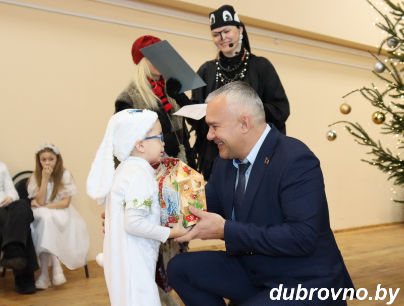 26 декабря в Дубровно подарили сказку, исполнили заветные желания детей из многодетных семей, детей-инвалидов района. Председатель Дубровенского районного исполнительного комитета Олег Макаревич вручил подарки всем ребятам, а артисты РДК подготовили новогоднее представление. Игры, песни, хороводы вокруг ёлки — все получили праздничное настроение и позитив.
